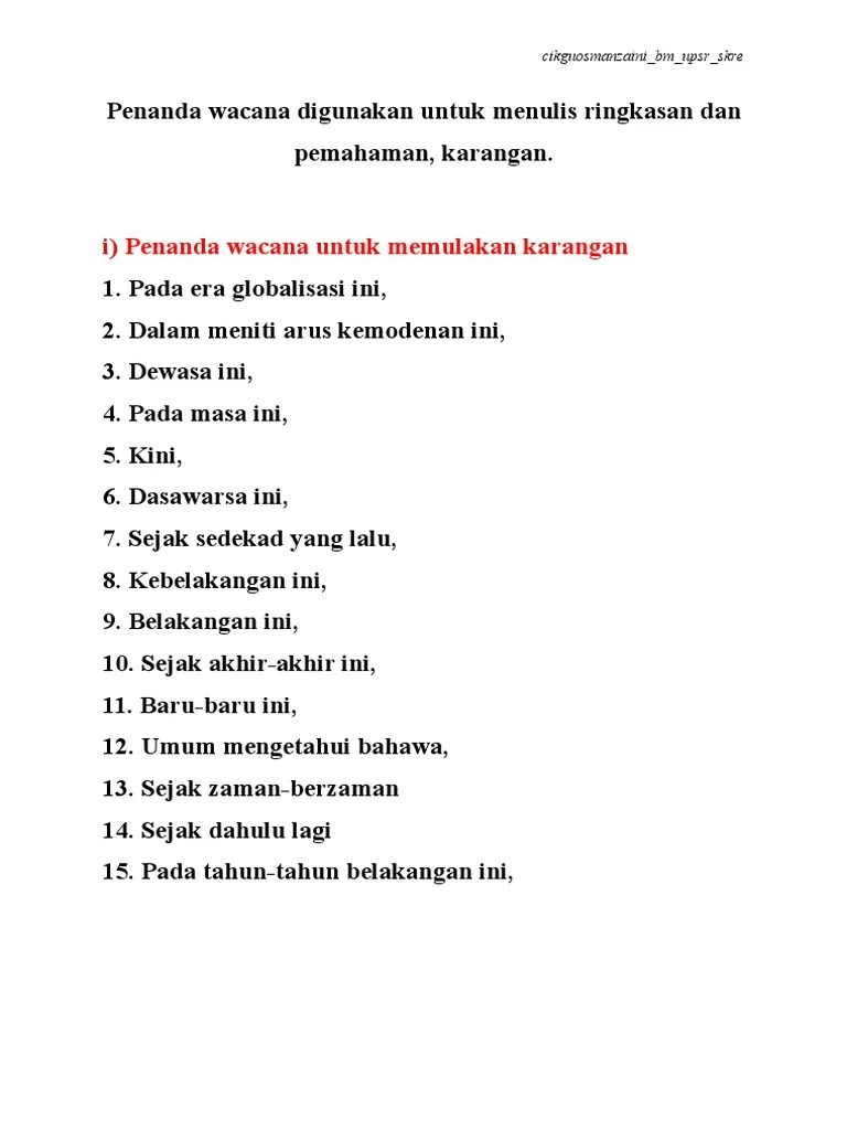 Contoh penanda wacana untuk pendahuluan surat r. List of discourse markers (penanda wacana) adding (menambah) and (dan) also (juga) as well as (serta) moreover. Okay, many people who learn english as their secondary language struggle to use penanda wacana (or discourse · cause and effect: Senarai penanda wacana | pdf. English teacher at smk batu lapan sik. Contextual translation of contoh penanda wacana bahasa eng into english. I am fluent in english and bahasa melayu | intermediate: Penanda wacana dalam bahasa inggeris. Okay, many people who learn english as their secondary language struggle to use penanda wacana (or discourse markers in english) correctly in their . Penanda wacana / discourse markers contoh / examples: